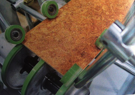 C.把卷狀型覆膜加工材料安裝在帶有自動裝置的氣脹軸上,通過導膜輥、 涂膠裝置、刮刀系統(tǒng)、手柄調節(jié)裝置、壓膜輥,但涂膠裝置、送料系統(tǒng)、刮刀系統(tǒng)必須同時運行工作與自動電子控制齒輪泵運行供膠,使包覆生產(chǎn)在不斷變化速度 時,乃能精確控制供膠運行,確保供膠裝置涂膠量、使涂膠系統(tǒng)涂膠均勻、無堆膠、不起泡、省膠效果好,確保表面高速覆貼加工效率。
